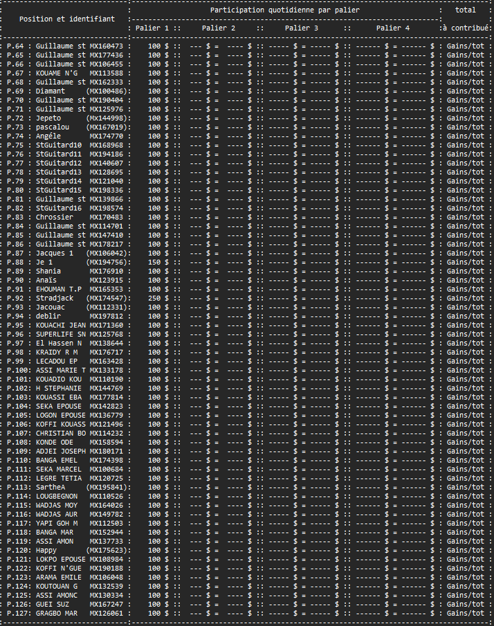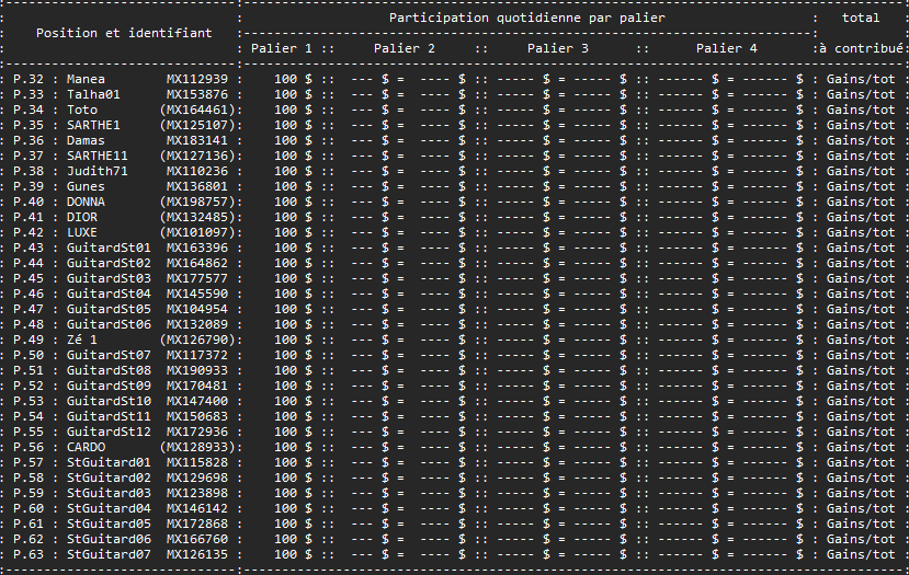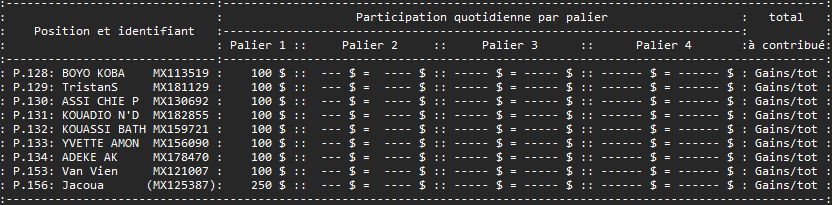 ci-dessous votre matrice par Niveau , cliquez sur leurs MX et découvrez également leurs situations